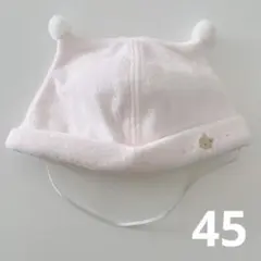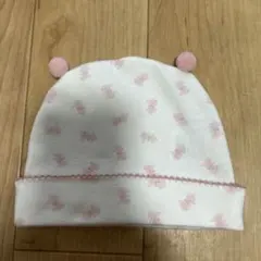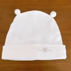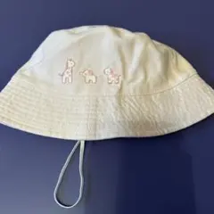 動物刺繍とポンポンが特徴のホワイトベビー帽子。