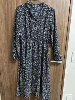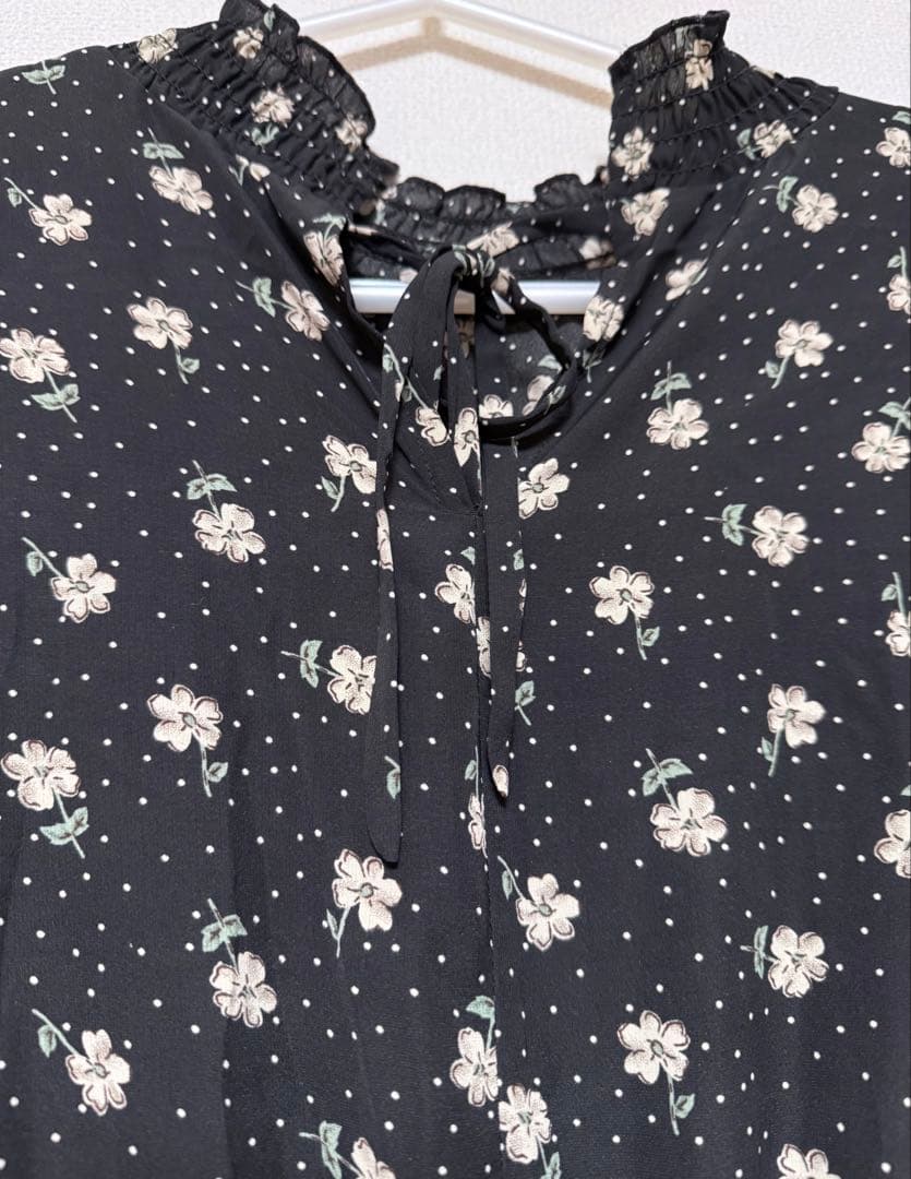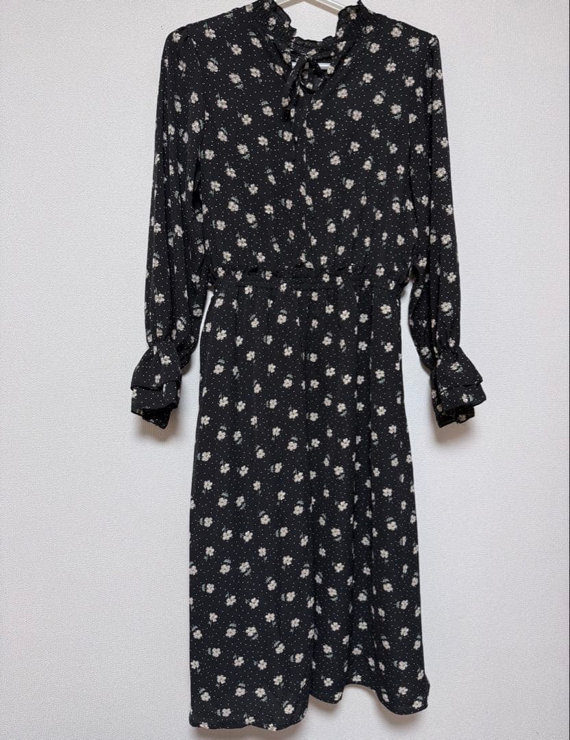 as know as ドット 花柄ワンピース ブラック 大人可愛い 上品 フリル