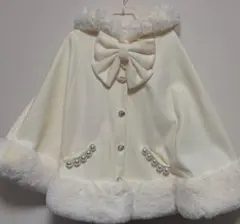 MARS リボン付きボリュームファーフードケープコード ポンチョ 白