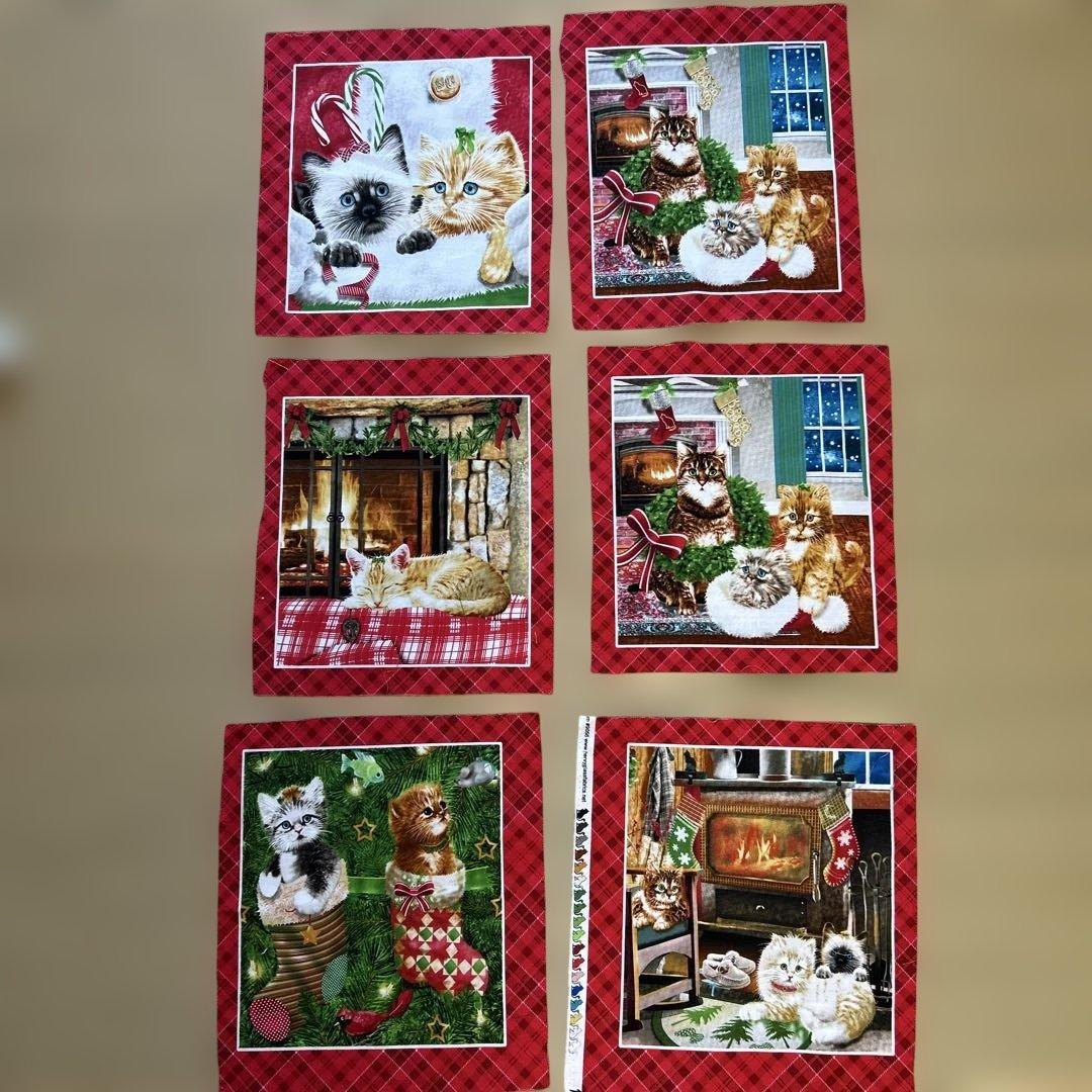 クリスマス生地、猫柄パネル