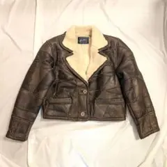 ニチロファー レザームートンジャケット ショート丈 ボア裏地 フロント釦 L 茶