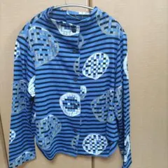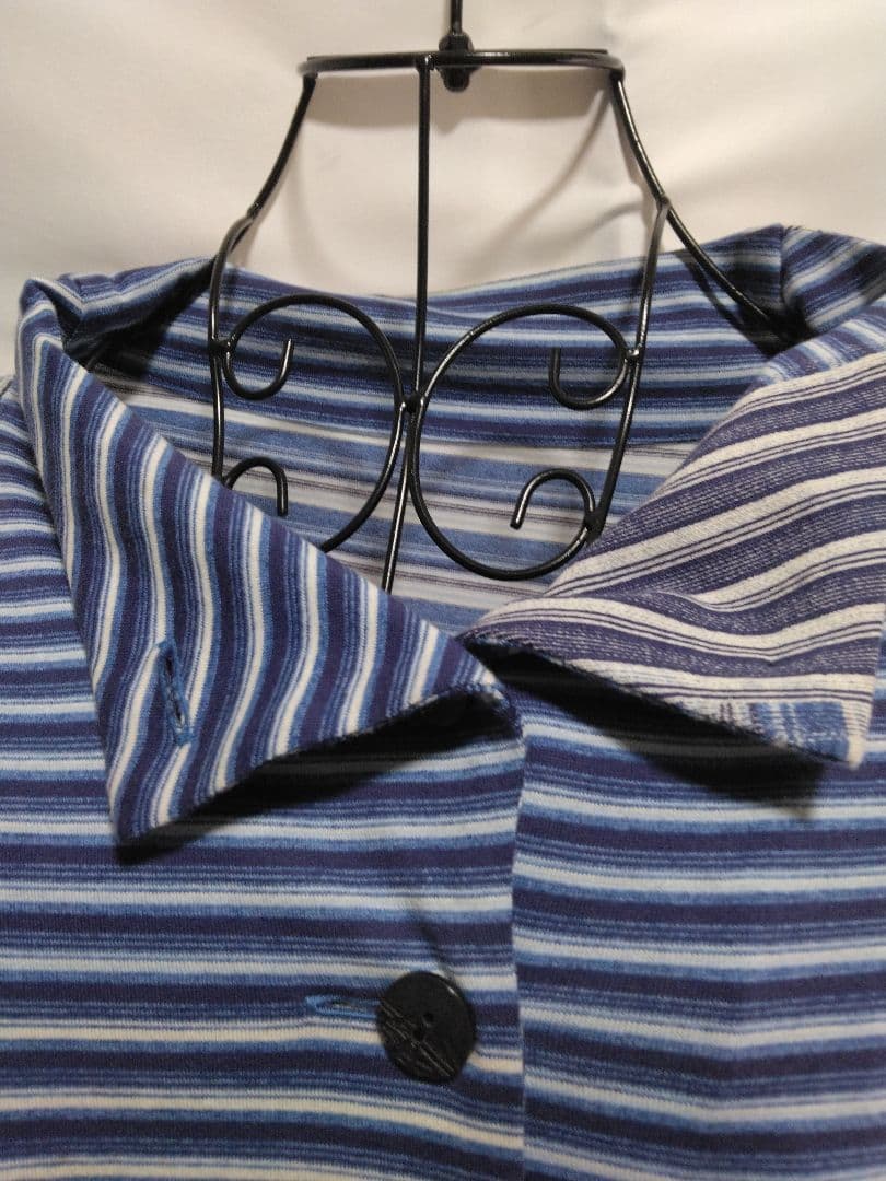 ボーダー アウター カーディガン チュニック ブルー系 長袖
