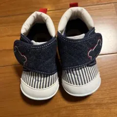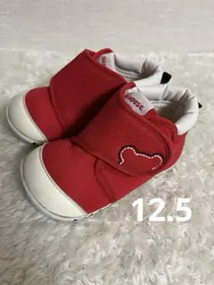 ミキハウスの赤いファーストシューズ、ナイロン素材で軽量。