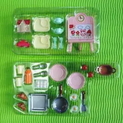 緑色の鍋、やかん、ヘラ、ミトンのセット。