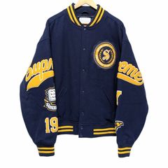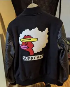 キルティングデザインのブラックスタジャン、サイズM、Supremeロゴ入り。