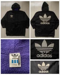 90s古着adidasナイロンジャケット刺繍ロゴブラックレッドDB343