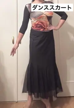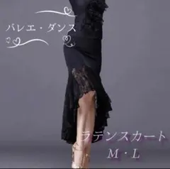 新品!ブラック Lサイズ フリルタイトスカート ミドル丈 ラテン 社交ダンス