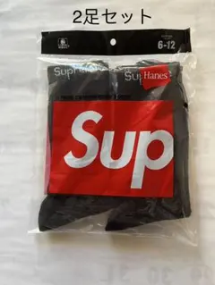 2足セット 黒+白 Supreme Hanes クッション クルーソックス