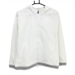 フード付きのグレーのキルティングジャケット、快適なスウェット素材で、ゴルフやカジュアルなシーンに最適。
