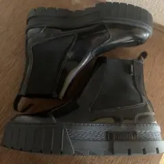 ジッパー付きのスタイリッシュなブラックハイカットブーツ。