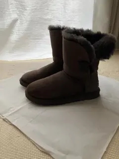 UGGのブラウンムートンブーツ、スエードとシープスキン素材で快適な履き心地。
