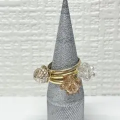 クリスタルABスワロフスキーをたっぷりと使用したキラキラとした光沢が綺麗なフラワーリングです。肌馴染みの良い落ち着いたゴールド色の特小で編み上げています。