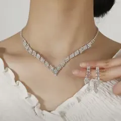 ネックレス&イヤリング/ピアス高品質2点セット‼️お花ブライダル新品ウェディングa