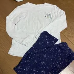 フリース素材の薄いピンクのパジャマ、すみっコぐらしの可愛い刺繍付き。