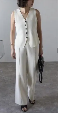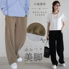 軽やかな素材のブラックワイドパンツ、リラックスした着心地でスタイリングに最適。