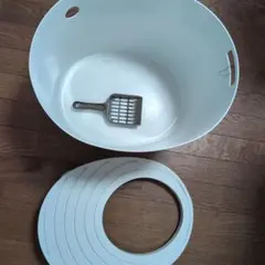 抗菌加工が施された広めの猫用トイレ、スコップ付きで便利。