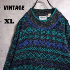 USA製 レトロ ハイネック モックネック 総柄 アクリル素材 ニット セーター