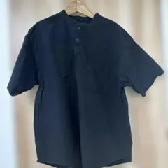 MUJI 無印良品 ジャガード コットン 半袖シャツ S 薄ネイビー