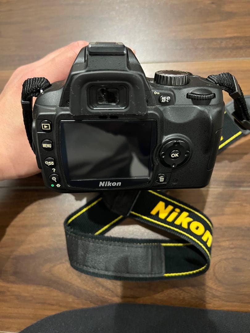 Nikonデジタル一眼レフ、標準ズームレンズ付き、撮影に最適。