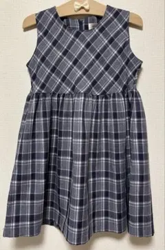 リボン付きのチェック柄ワンピース、サイズ130。