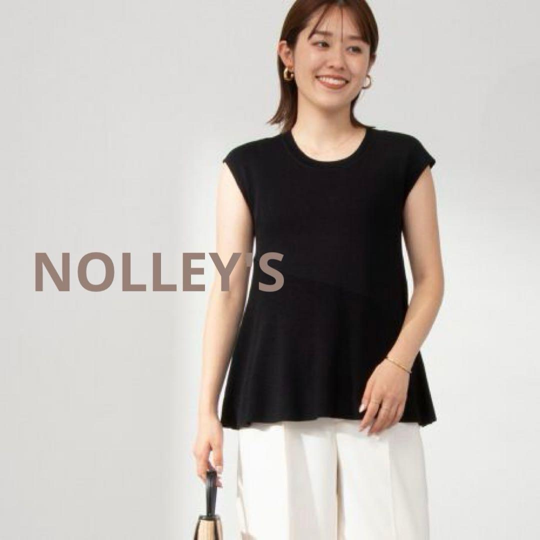 ノーリーズNOLLEY'S斜め切り替えフレアノースリーブプルオーバーニット38