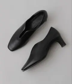 このapart by lowrysのパンプスは、洗練された黒の合成皮革で作られており、どんなコーディネートにもマッチします。