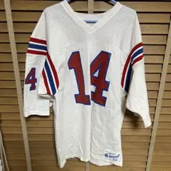 Champion製の赤いアメリカンフットボールシャツ、番号8、サイズ48、前面に小さな汚れあり。
