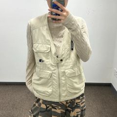 メッシュ素材を使用した通気性の良いオリーブ色のベスト。