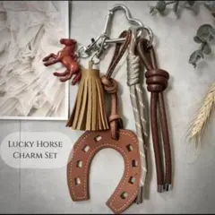 ・LUCKY HORSE バッグチャーム 馬蹄、タッセル、ロープモチーフ、馬モチーフ、英字プレートの5種類が組み合わされた、存在感抜群のバッグチャームセット