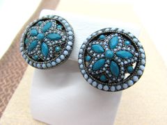 中央にターコイズがあしらわれたゆらゆら揺れるイヤリング