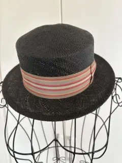 ベージュの麦わら帽子に黒いリボンが特徴の未使用品。