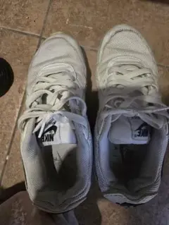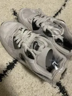 エアマックススタイルのホワイトスニーカー、メッシュと合成皮革の素材で快適な履き心地。