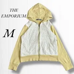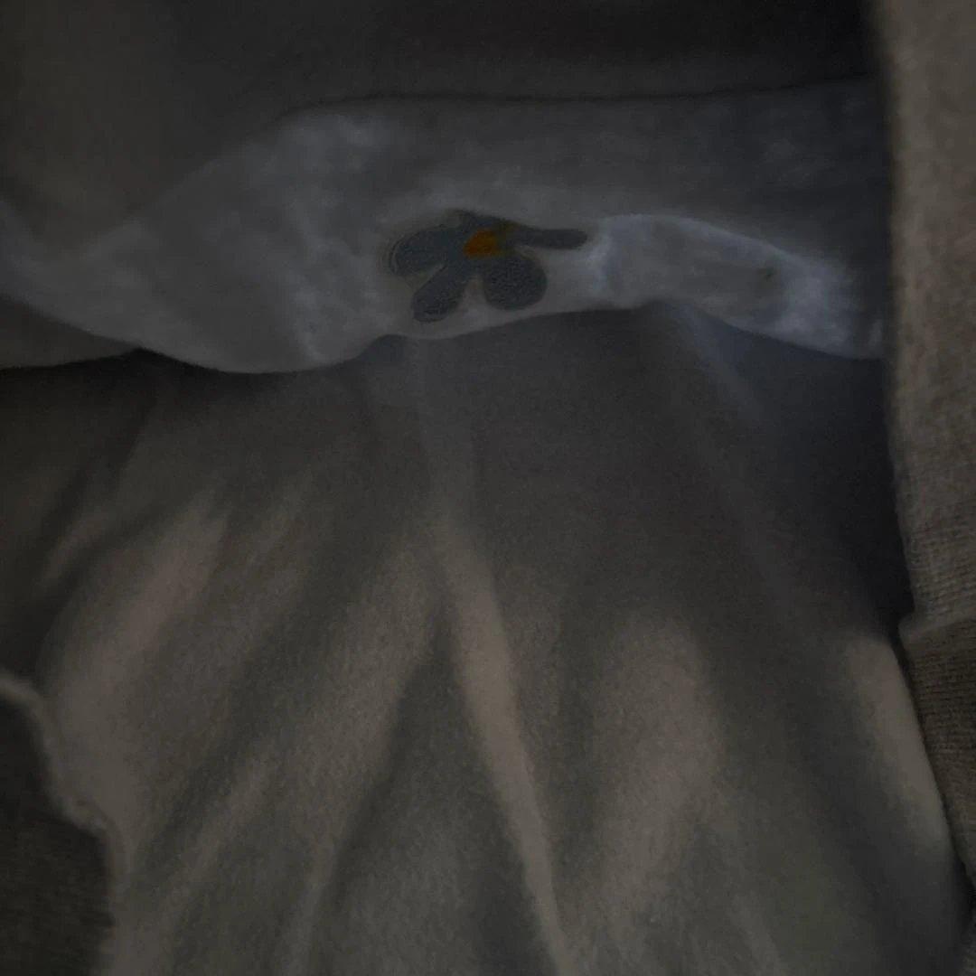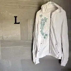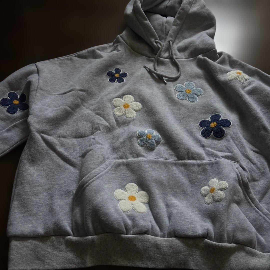 花柄刺繍が施されたグレーのフード付きパーカー。