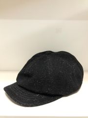 黒と白の幾何学模様のキャスケット、ウール素材のような質感。