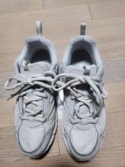 スエードとメッシュ素材のグレーのASICSスニーカー。