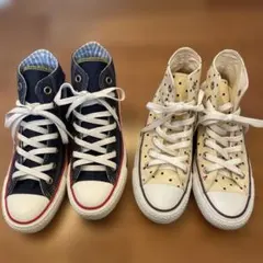 赤のハイカットオールスター、インソール使用による底部の黒ずみあり(3枚目参照)