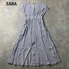 美品【ZARA】カフタンドレス マキシ丈 エスニック柄 ワンピース 半袖 緑 S