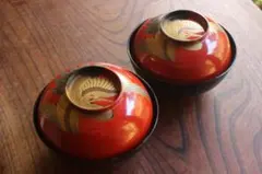 山中塗 山中漆器 夫婦椀 お椀 汁椀 2客 金蒔絵 溜塗 さくら 桜 うめ 梅