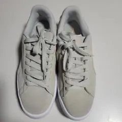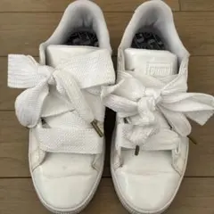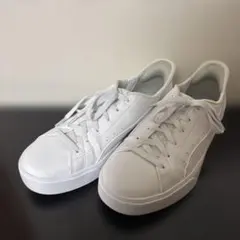 ホワイトの合成皮革を使用したPumaのカジュアルスニーカー。