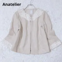 【アナトリエ】ケープ風ウールジャケット 36 チャコールグレー くるみ釦 結婚式