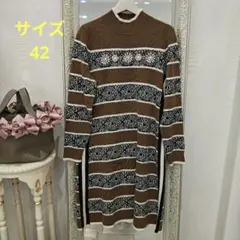 スーパービューティー♡ 縄編み柄ニット×タフタ切替 レイヤード風チュニック