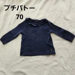 プチバトーの半袖Tシャツです。落ち着いた緑色にハート柄が可愛いTシャツです。後ろのホックで脱ぎ着できます。