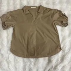 レースディテールが特徴のブラック半袖シャツ。肩の透けたレースがきれいです。目立つ傷や汚れはありません。