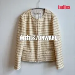 自由区 グレージュ ライトグレー ノーカラージャケット サイズ40