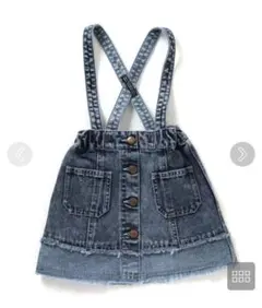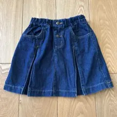 デニムブルーのフリンジ裾スカート、サイズ130、バックポケット付き。
