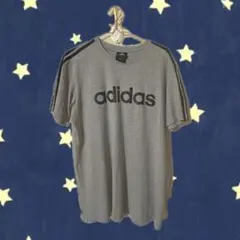 リサイクルプラスチックを使用したadidasのブラックTシャツ、カラフルなロゴプリントが特徴。