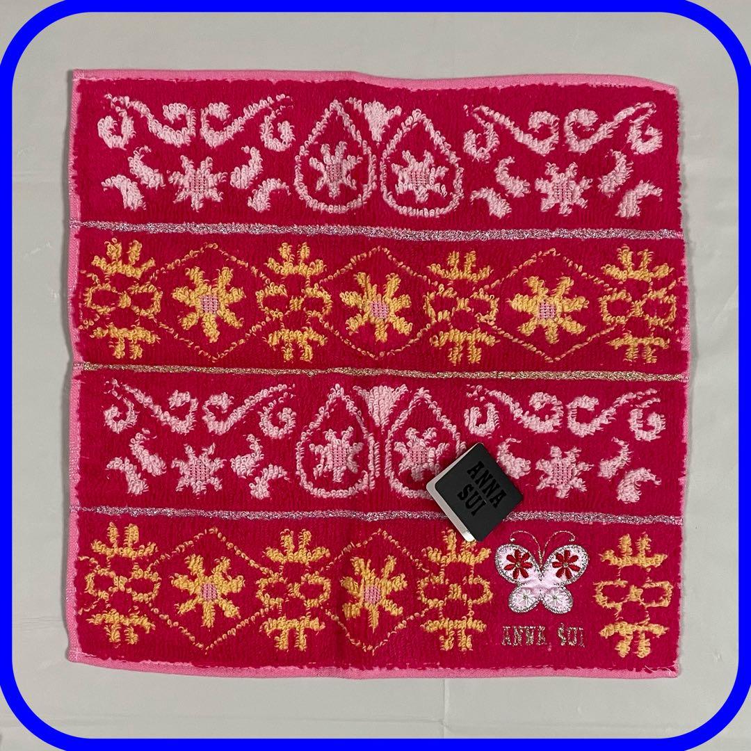 ANNA SUI タオルハンカチ 蝶々刺繍 濃ピンク
