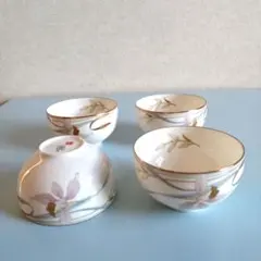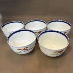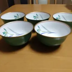 香蘭社 緑色の金色蝶デザイン湯飲み5セット 木箱付き