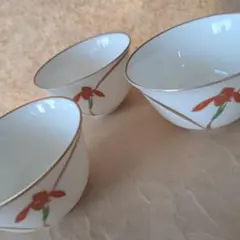 緑色の外側に金色の蝶のデザインが施された湯飲みセット、内側は白色