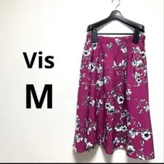【ViS】膝丈フレアスカート ウエストリボン ポケット M ネイビー 上品 ゴム